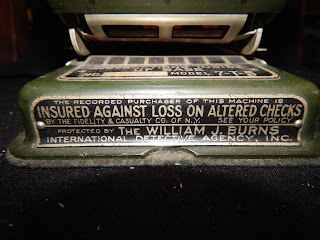"The Recorded Purpose of this Machine Is Insured Against Altered Checks by the Fidelity & Casualtiy Co. of N.Y ... See Your Policy"